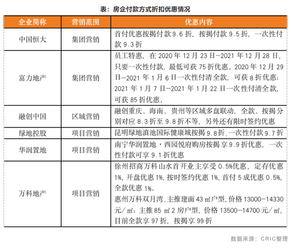从2020年销售回款率表现较为优异的几家房企来看,其中通过加大营销力度促销售,设置专项优惠促回款是其最多的一种方式。