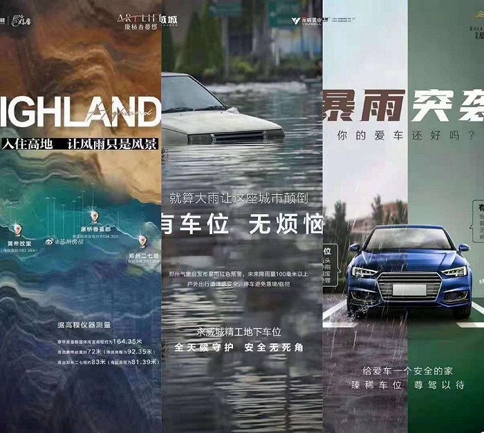 在网民纷纷为抗灾揪心、扩散求助救援信息的同时,网上开始流传三张海报,疑似河南本土房企康桥地产、永威置业、亚星集团借雨势进行灾难营销。