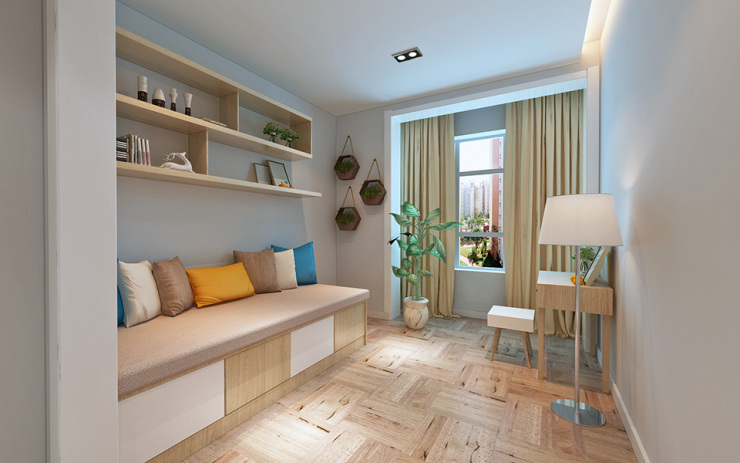 设计说明:客厅墙面整体灰色调的装修,跟原始家具十分的搭配,电视背景墙两侧的软木,提成了整体家居的氛围,又添加了东方的禅意神韵,客厅少有墙面设计师利用石膏板拉缝工艺,使得单调空堂的墙面,生动立体,周遭的世界已经足够噪杂喧嚣,很多时候我们都身处无法逃遁的状态。这种调调,是设计师想要营造的,井井有条却又放松、宁静、通透。
