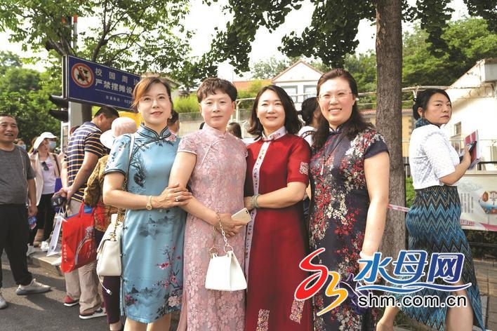 在烟台一中考点,考生家长身穿旗袍合影,祝福考生“旗开得胜”。 YMG全媒体记者 初阳 摄