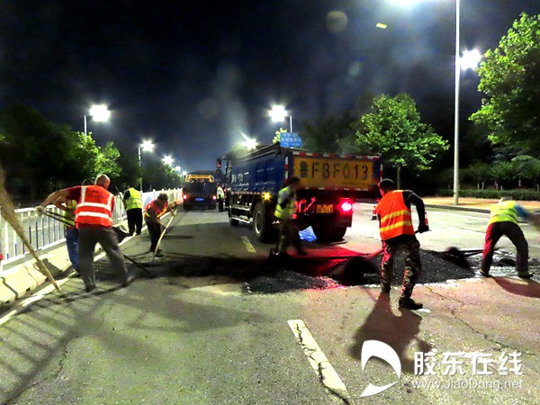 胶东在线8月24日讯(记者 王向荣 实习生 王钧霖 通讯员 王为超)为进一步提升市管市政道路设施健康状况,更好服务市民,同时为“双城联创”“旅发大会”等全市重点工作提供助力,烟台市城管局市政养护中心强化所属设施养护维修工作,加快推进道路设施完善提升。为减少施工对交通的影响,8月份以来,市政中心推行夜间沥青施工,22:00后开始维修,早晨5点前撤出,保障高峰期车辆出行畅通。