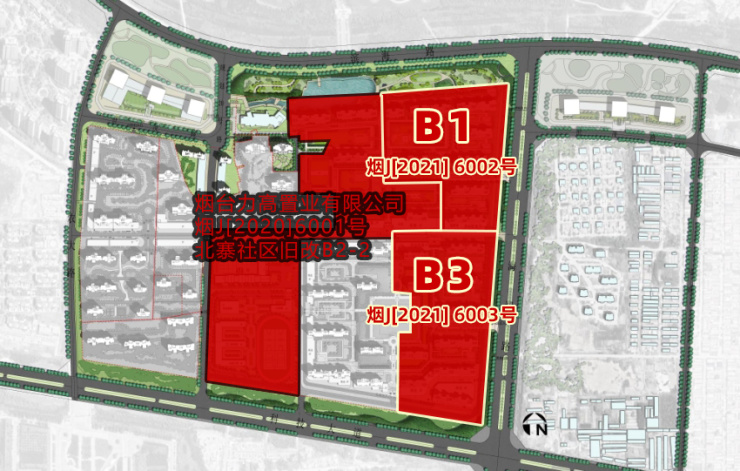 北寨旧改B3地块(烟J[2021] 6003号)位于高新区海澜路以西、科技大道以北,起始总价63000万元,起始楼面价2966元/平方米,出让面积60578平方米,竞拍保证金4000万(美元),用地性质为住宅、商业、公共管理与公共服务。