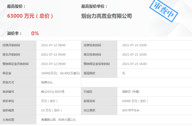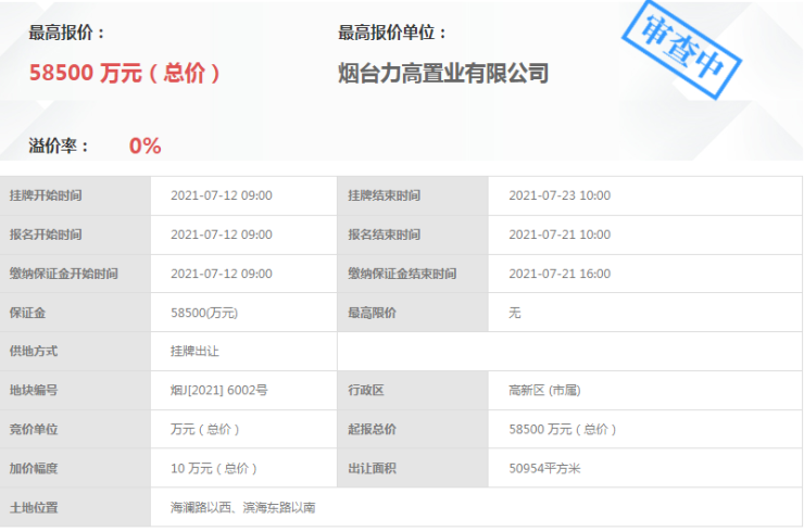 截止上午十点整,两地块均由烟台力高置业有限公司以起始价摘获,或为力高阳光海岸项目后期加推用地。