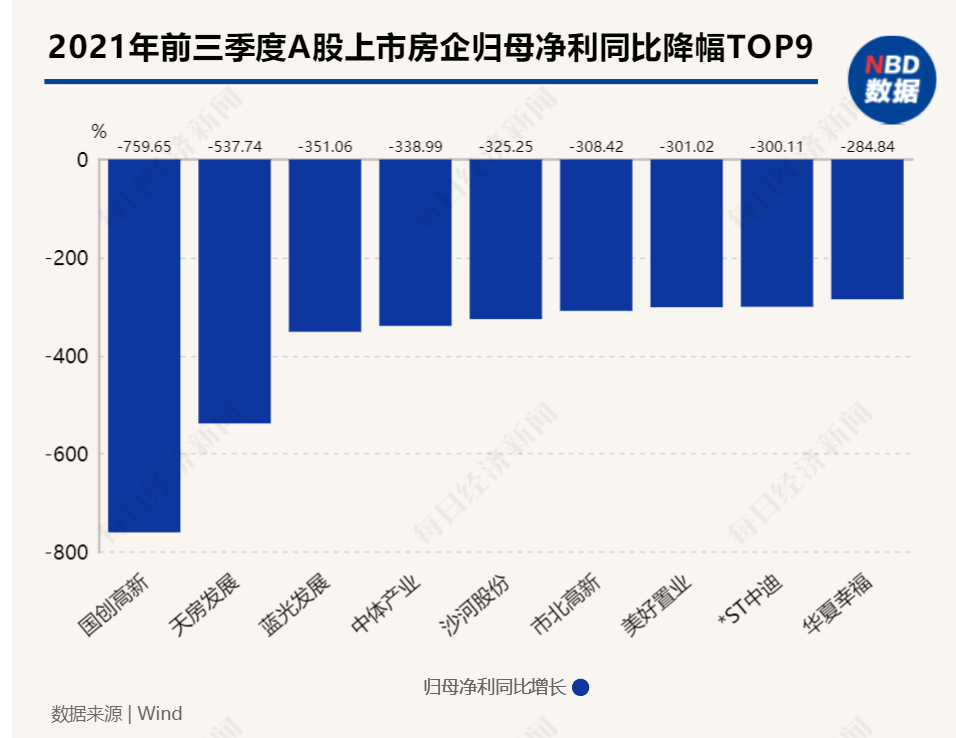 大中型房企净利降幅多在双位数