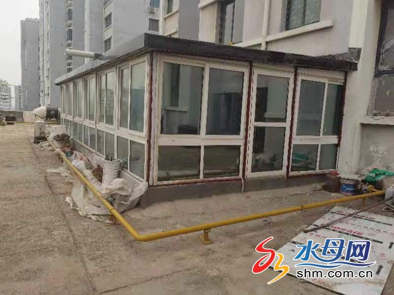 记者在现场看到,在张女士窗外的平台上,堆放着一些建筑垃圾,“清理公共区域为啥这些垃圾不清理,单单清理我家的架子?”张女士表示不能理解。