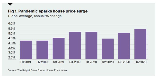受疫情财政刺激等多方因素驱动,全球房价创自金融危机前以来的较大涨幅。