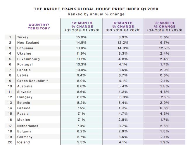 研究机构Knight Frank的全球房价指数报告显示,截至今年3月的12个月,全球平均房价上涨7.3%,为2006年第四季度以来的较快增速。