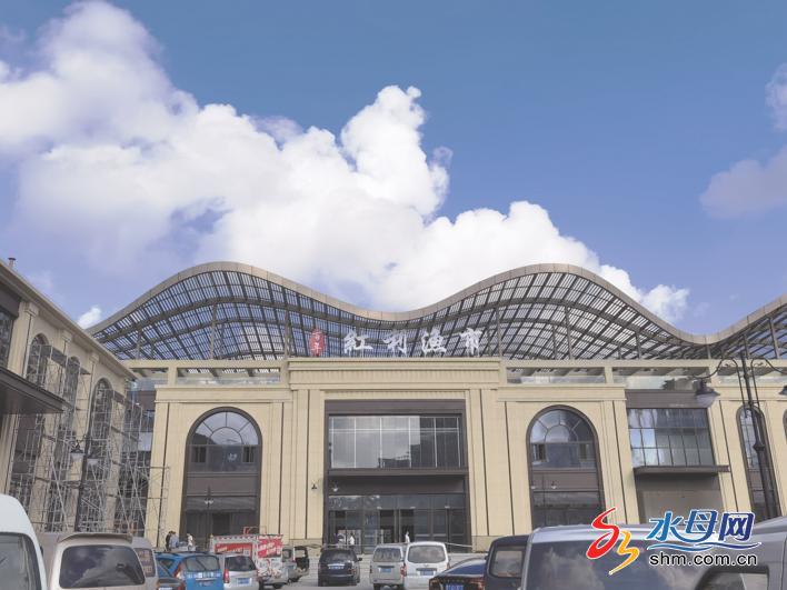广场西侧,便是备受市民关注的渔市综合体项目。“百年红利渔市”已经挂牌,仅仅是这几个字,便让人闻到了曾经老红利市场的烟火气息。渔市综合体项目主体建筑和外立面已经完工,施工人员正在进行内部装修。