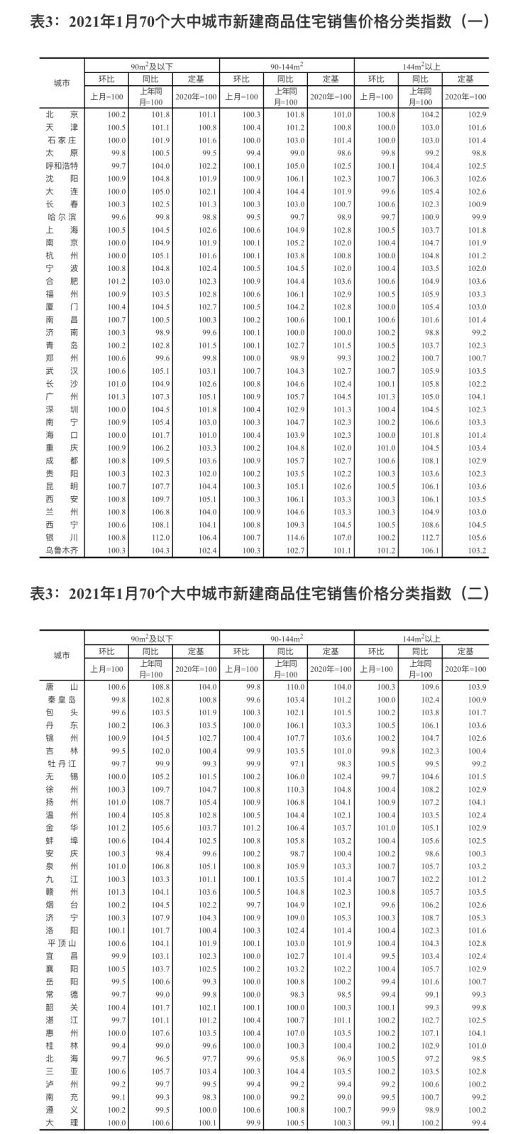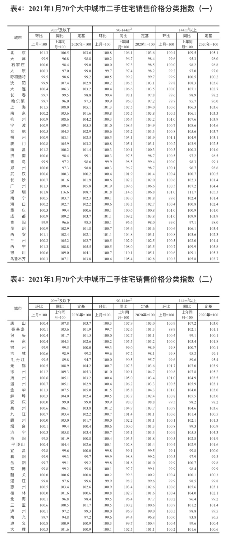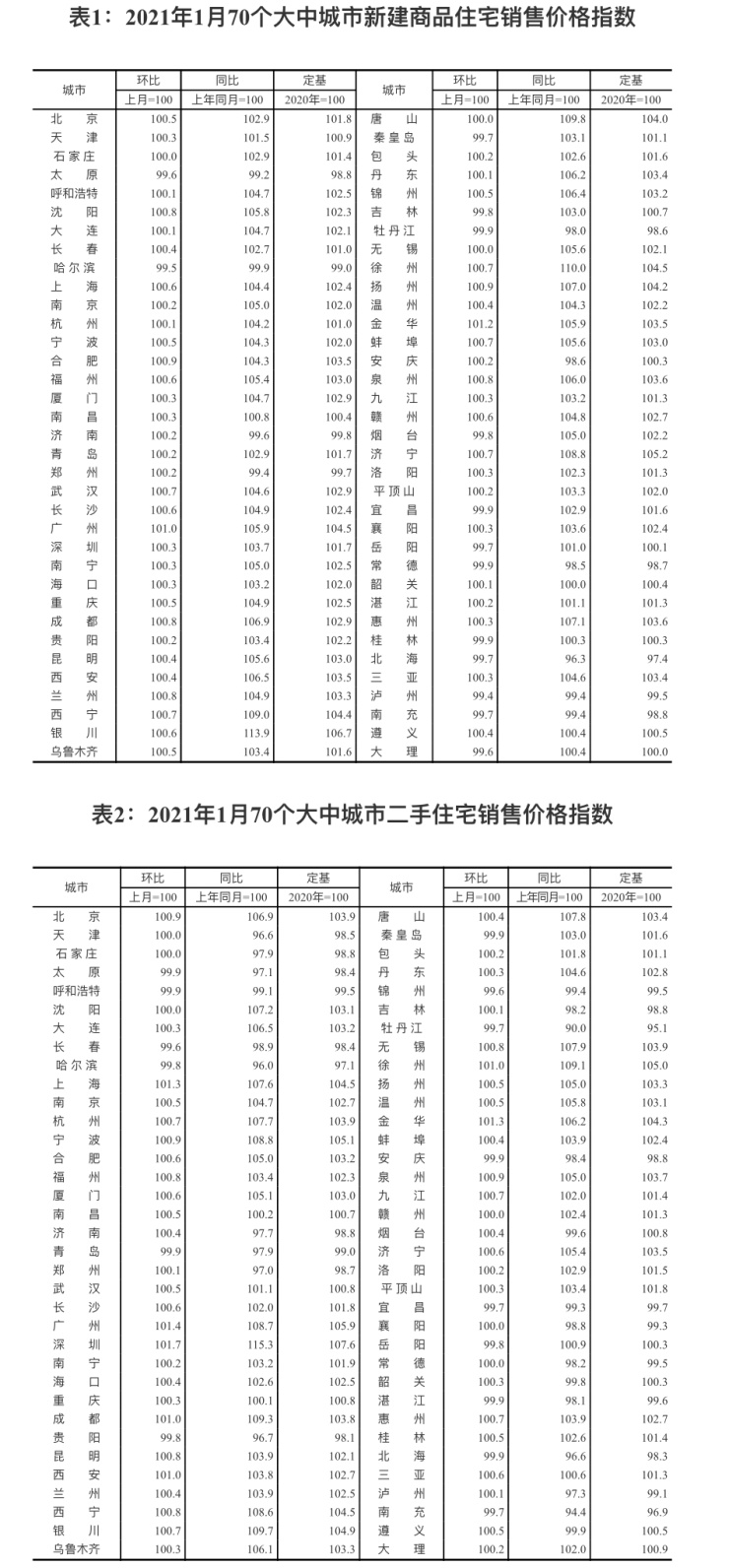 2月23日,国家统计局发布2021年1月70个大中城市商品住宅销售价格变动情况。从全国70个大中城市房价数据看,2021年1月,70个大中城市中有53个城市的新建商品住宅价格上涨,较去年12月增加11个;二手房方面,70个大中城市中房价上涨的城市数量有49个,较去年12月同样增加11个。