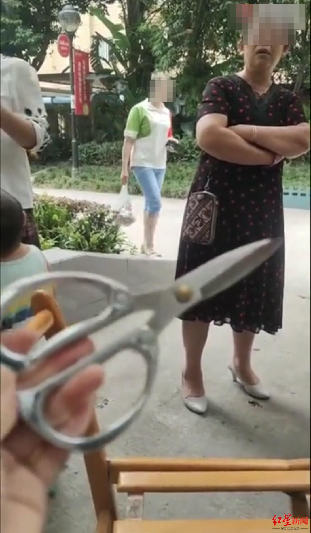 事发当天,有人拍到落下的剪刀,右一为曾大姐