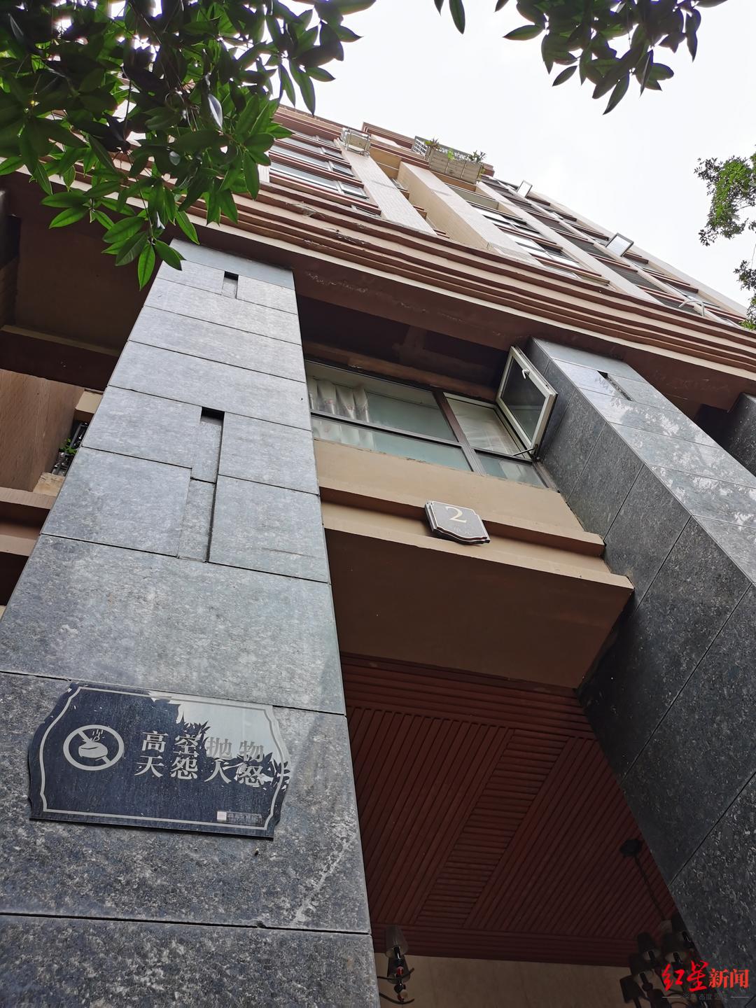 曾大姐是小区住户,据她介绍,包括一楼架空层,事发楼栋有12层。红星新闻记者看到,柱子上张贴着“高空抛物 天怨人怒”的警示文字。“事情一发生,我就去找了物管,他们报了警。”曾大姐说,“我需要一个说法。”
