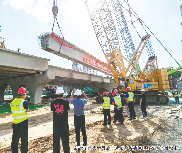 新建东关大桥工程连接内夹河东西两岸,道路等级为城市次干路,设计车速为40千米/小时,规划双向四车道。项目全长约204米,其中东关大桥全长145米。桥梁断面按双向4车道与两侧非机动车道、人行道布置,全宽28.5米,其中机动车道宽度14.5米,两侧非机动车道各宽3米,机动车道与非机动车道之间均有0.5米的护栏,两侧人行道各宽3.5米。记者了解到,新建东关大桥将于今年11月通车。