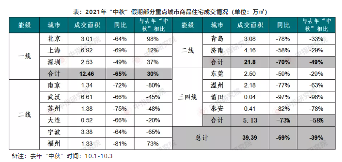 9月22日,根据中指研究院公布的数据,今年“中秋”期间(9月19日-21日),部分重点监测城市商品住宅成交面积较去年同期下降69%,与去年“中秋”假期低基数相比,亦下降39%。中指研究院指数事业部研究副总监陈文静指出,主要原因在于房地产监管环境依旧较严,多地调控政策逐渐显效,导致购房者置业意愿快速下滑,市场观望情绪浓厚,商品住宅成交规模有所下降。