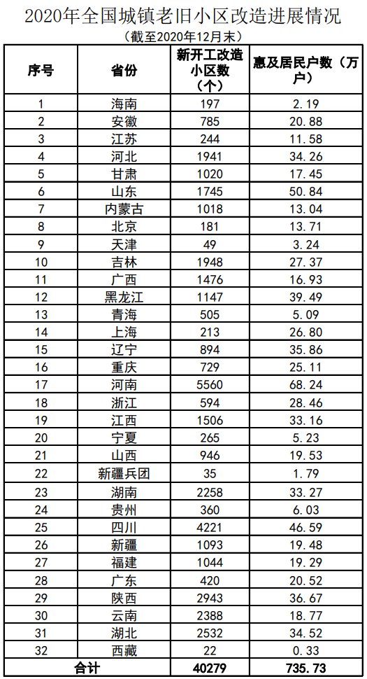 去年全国新开工改造城镇老旧小区超4万个 惠及居民约736万户