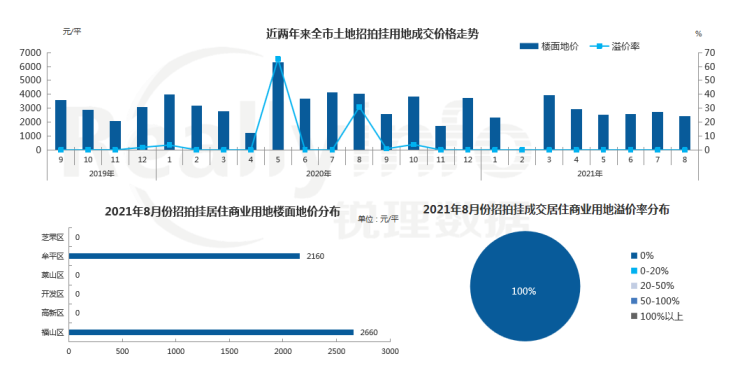 【土地价格】本月主城区商住土地成交4宗,楼面地价为2446元/㎡,均为底价成交