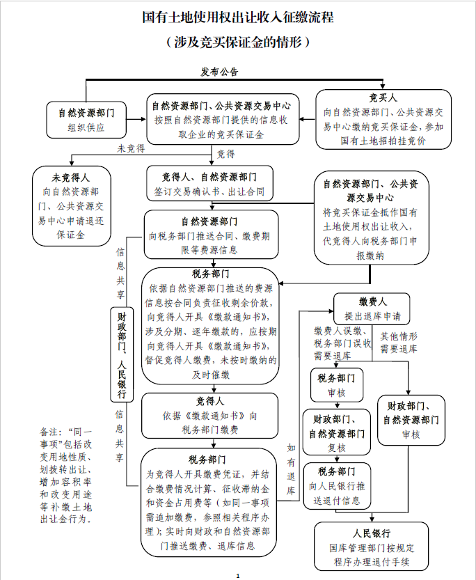 征缴流程显示,国有土地使用权出让收入分为涉及竞买保证金的情形,以及按照规定标准确定出让金额,不涉及竞买保证金的情形。