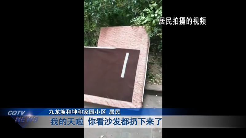 钢管哑铃沙发不停往下扔 业主一边拍摄视频一边大喊“快躲开”