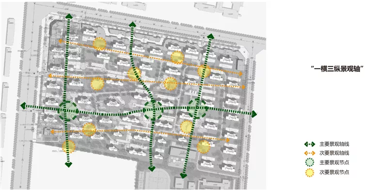 根据小区组团的空间特点,以一横三纵为主要景观带,串联出每个组团景观节点。同时各组团有各自不同的形态、风格、手法。组团花园连成的重要景观带在视线和功能使用上有机地融入在一起。