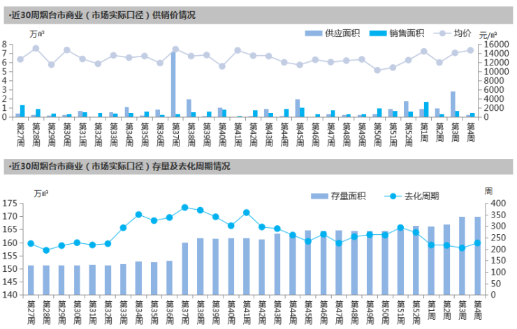 【整体市场】本周商业市场供销齐降,价格上涨,去化周期升至228周