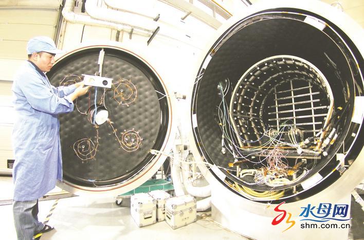2018年9月17日,技术人员在513所准备对微纳卫星零部件进行真空试验。(资料片)
