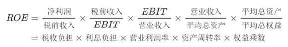 为进一步分析各环节对利润造成的影响,可使用杜邦分析对ROE(权益指归属上市母公司权益,不含少数权益)进行分解。本文采用五步杜邦分解,即: