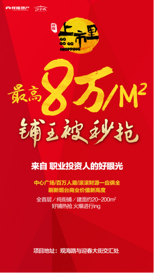 上市里负责人说,业主在很快做出决定买下铺王后,告诉他买铺的原因。作为地道的烟台人,又一直在投资行业,在其他区域商业被炒得较旺的时候,他也没有一个猛子钻进去,但在上市里,他是早就盯准目标的。“莱山烟大商圈是烟台未来最值得期待的一块肥肉,不仅因为这个区域目前是烟台高端居住人群最密集的区域,更因为和其他区域相比,这里的商业及生活氛围更浓。高品质楼盘云集、四大世界500强级MALL连接,观海路等城市干道的极速交通,观山望海及5万㎡的城市公园配套,还有独具烟台特色及世界美学的商街布景,两大知名学府数以万计的学子资源百万人潮……这里的资源优势是毋庸置疑的,未来的发展潜力也是毋庸置疑的,既然有如此的高人气,更有祥隆的实力护航和3年运营保障……让人又有什么理由不选择这里呢。”李先生表示,要投资商业,首先要考虑的就是人,没有人气,再好的商业都枉然。而上市里,是他所看好的,烟台较具人气的商铺,也是他的投资优选。