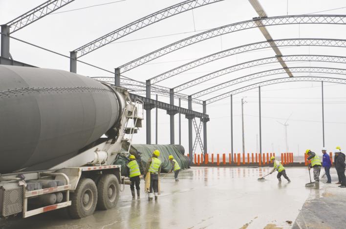 在龙口市北马制梁场,同样一派如火如荼的施工场面。在已经完工的料棚旁,一座钢构的钢筋加工厂正在进行地面硬化。现场技术员朱青告诉记者,目前,制梁场的拌合站粉料罐已经安装完毕,龙门吊正在安装,存梁台基础正在开挖,北马制梁场大临建设进入尾声。制梁场现已存储1000多吨钢筋,为预制梁的生产做足物资储备。本月,这里就要进行首榀箱梁的浇筑,这也标志着潍烟高铁进入箱梁预制阶段和主体工程施工阶段,拉开潍烟铁路项目全面建设的序幕。