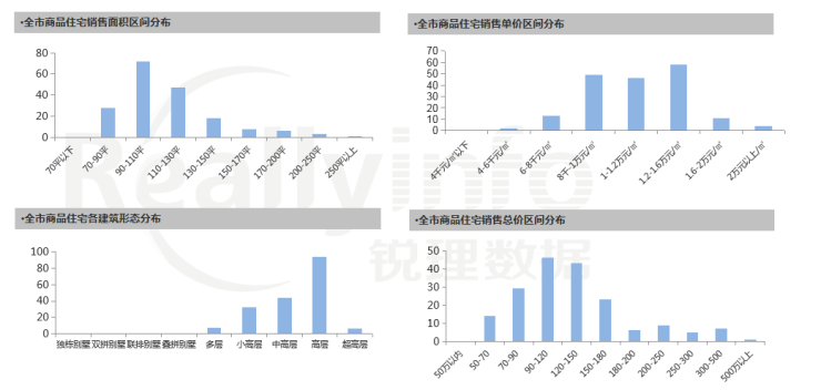 【产品结构】本周全市商品住宅成交多为高层,面积集中在90-110㎡,总价多位于90-120万之间