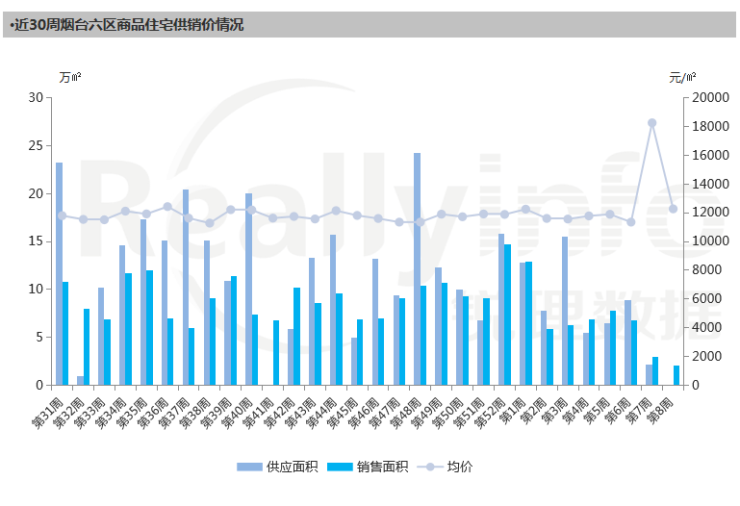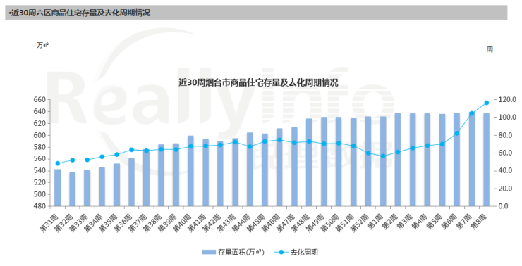 第八周烟台六区商业市场无新增供应;签约7套,成交面积约0.16万㎡,成交面积环比下降31%;烟台六区签约均价12940元/㎡,环比下降9%;截止到周末商业存量约1.21万套,面积约170.04万㎡,去化周期升至357周(约83.1个月)。