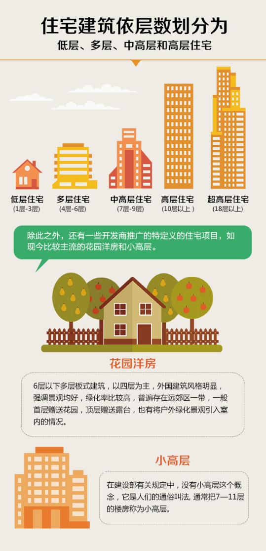 除此之外,还有一些开发商推广的特定义的住宅项目,如现今比较主流的花园洋房和小高层